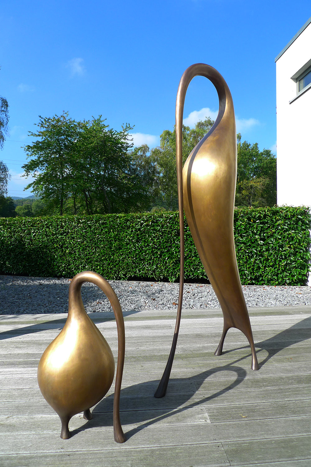 Die Werke des Künstlers erobern zierlich, elegant, schillernd, zeitlos und erhaben jeden Raum. Mit Bedacht gelingt es ihm dabei, auf die perfekte Form, Lindenholz, Metall und Kunststoff zu bannen und überlebensgroße Skulpturen entstehen zu lassen. Generell arbeitet der Künstler in Zyklen und widmet seine Skulpturen grundlegend zwei Begrifflichkeiten: Zeit und Raum. Seine Werke aus dem Zyklus „Homo Solaris“ wirken wie aus dem Leben entsprungen, denn ihre Urform – meist ein Kokon – trotzt der Schwerkraft und sucht den Kontakt zu Mutter Erde.