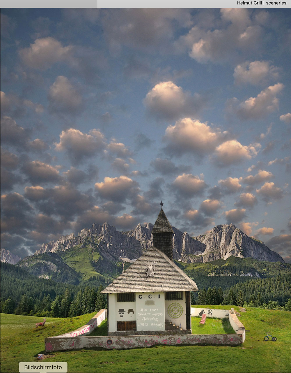 Helmut Grill ist Fotokünstler, wurde 1965 in Salzburg geboren und kommt ursprünglich aus dem Bereich der Fotografie und Werbeindustrie. Sich selbst bezeichnet er als Komponist. Warum? Seine Bilder liefern die Antwort. Sie sind ein verrücktes, doch stimmiges Arrangement an Fundstücken unterschiedlicher Herkunft.